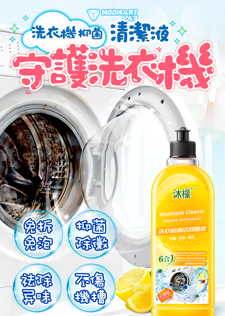 4分鐘前還洗衣機一個清新 ,一鍵免浸泡 洗衣機抑菌清潔液 淡淡清香_你值得擁有 - 【家庭團購】10入組 NT$1590
